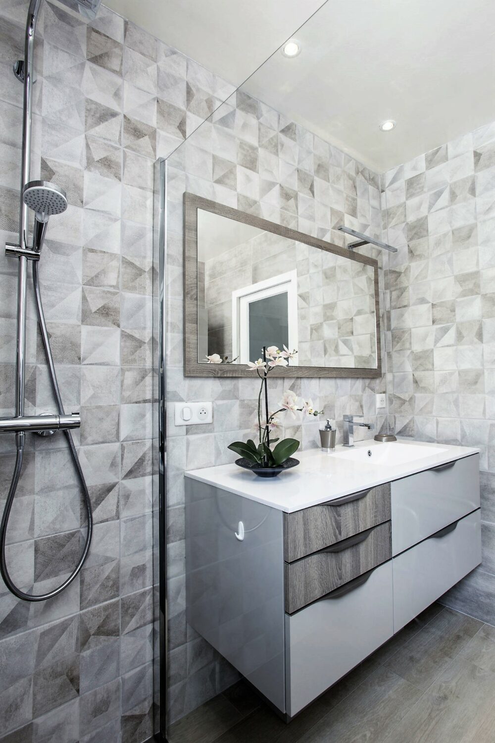 La paroi verre, derrière laquelle vient s’intégrer toute en discrétion la douche à l’italienne, permet de donner à la pièce un sentiment d’espace.