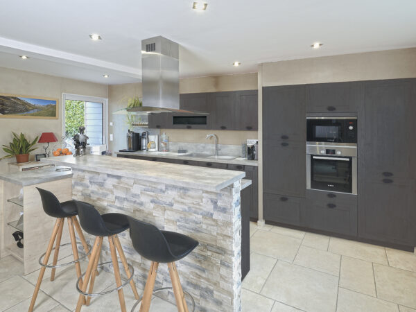 FUTURA Mélaminé Muscade Structuré et BORÉALE Chêne Laqué Charbon